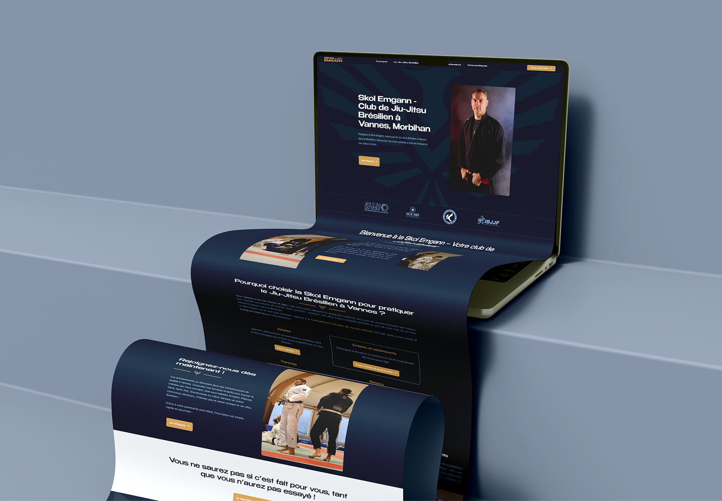 Skol Emgann est un club de Jiu Jitsu Brésilien en pleine évolution, déterminé à affirmer son identité et à structurer sa présence en ligne. Le projet avait une double ambition : créer une identité visuelle entièrement nouvelle et concevoir un site web clair, complet et capable de soutenir la croissance du club. J’ai mené toute la direction artistique, l’UX/UI et l’intégration web, tandis que Thomas HERRERO m’accompagnait sur les contenus, la stratégie marketing et le référencement.